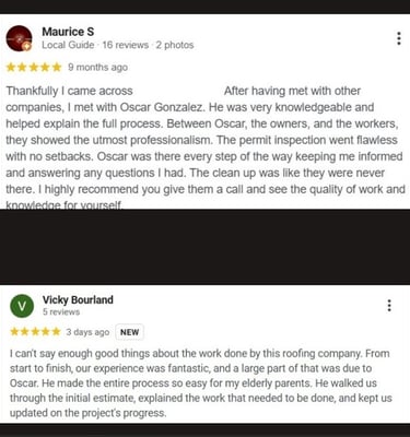 Hola! Soy Oscar Gonzalez y soy consultor de techos en Miami, prestando servicio en el sur de Florida, desde Homestead hasta Fort Lauderdale. Mi objetivo es ofrecer un servicio al cliente excepcional, trabajo de calidad y precios justos y competitivos. La mayoría de nosotros no sabemos qué buscar al comprar un techo nuevo o al elegir al contratista adecuado. Puede resultar abrumador. Me gusta comenzar con una evaluación física de la propiedad y una serie de preguntas para ofrecerle varias opciones basadas en mi experiencia. Mi trabajo es informarle para que pueda tomar la mejor decisión para su hogar. Al final, no se trata solo de una transacción de techos, ¡usted está pagando por tranquilidad y resultados!